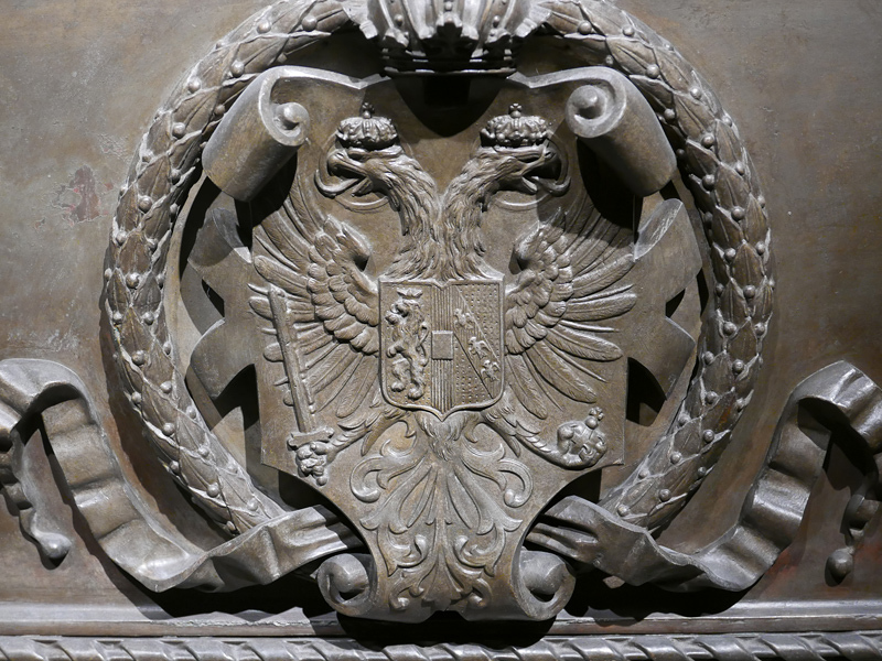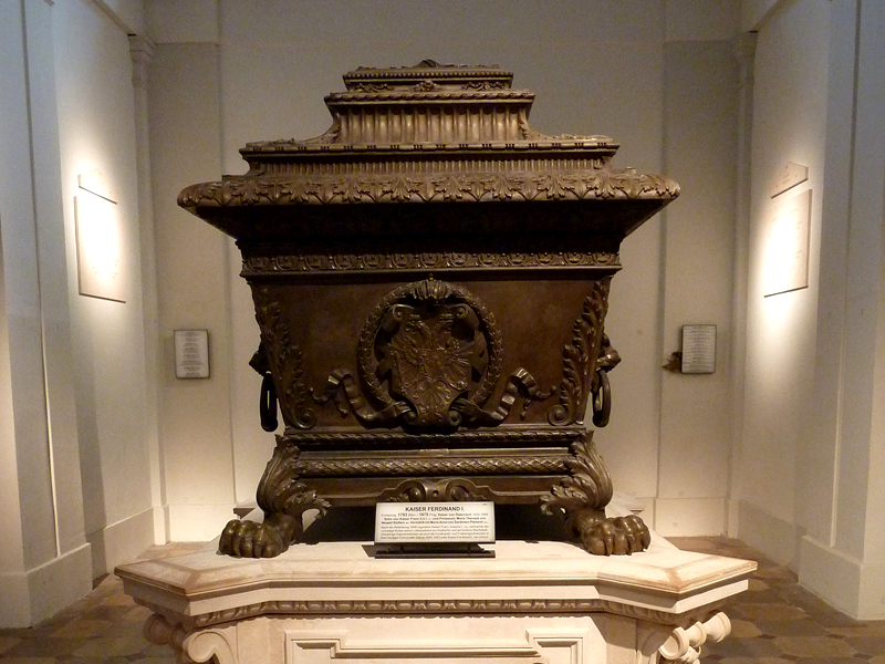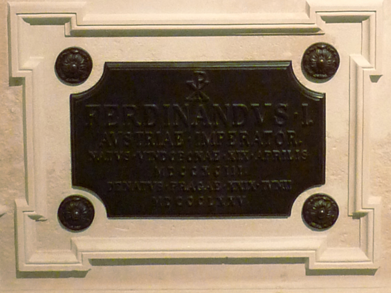 Postament-Inschrift am Sarkophag Kaiser Ferdinands I., des "Gütigen"