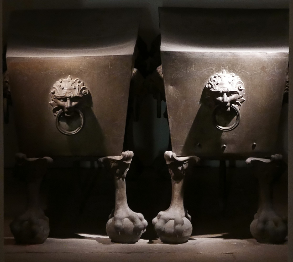 Der Raum ist niedrig, schmuck- und fensterlos und durch ein barockes Gitter von der Leopoldsgruft getrennt. Hier stehen die schlichten, truhenähnlichen Sarkophage des Stifterpaares, Kaiserin Anna und Kaiser Matthias (N°2).
