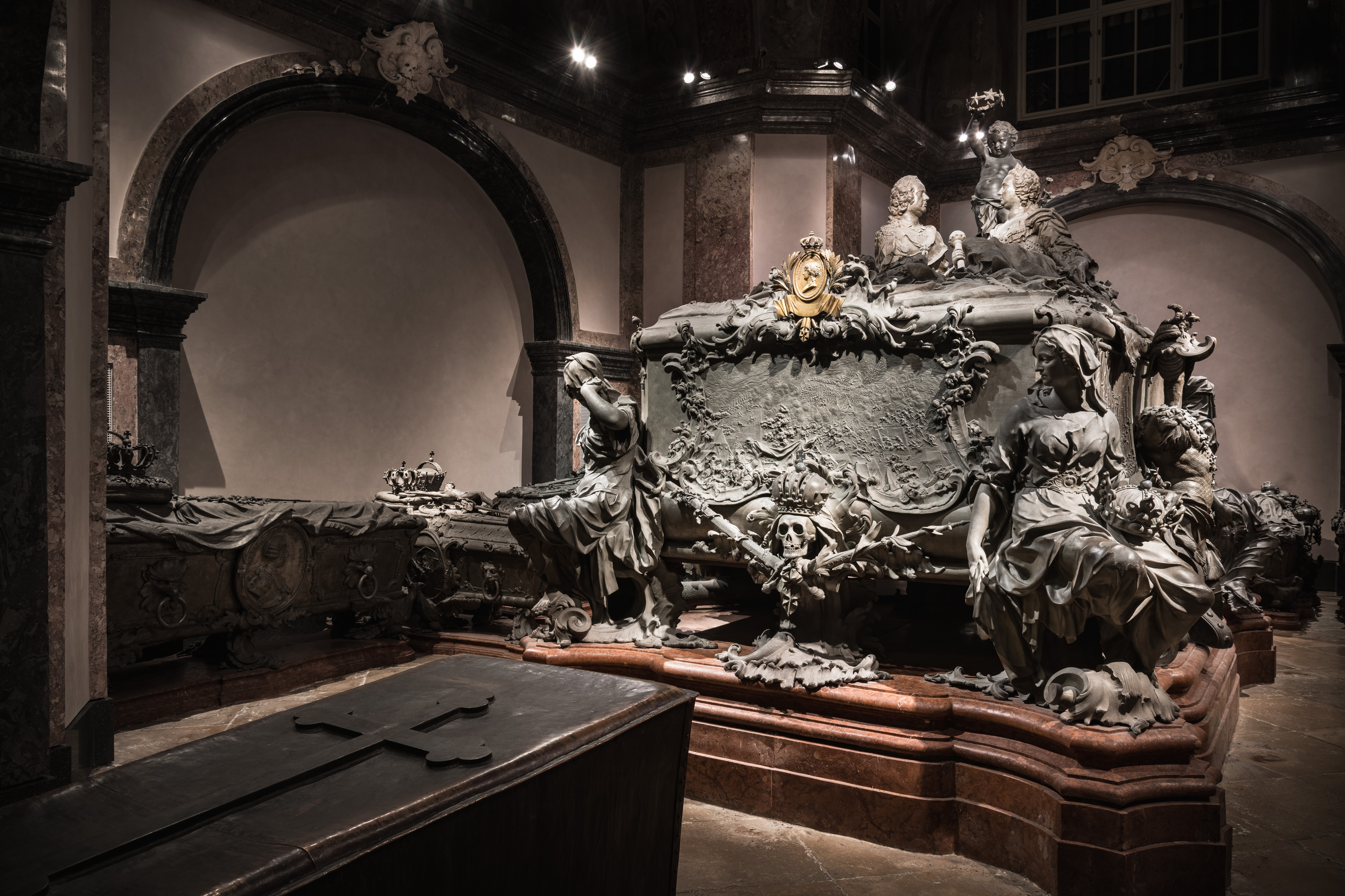 Totenschädel auf dem Sarkophag von Maria Theresia und Franz I. Stephan.