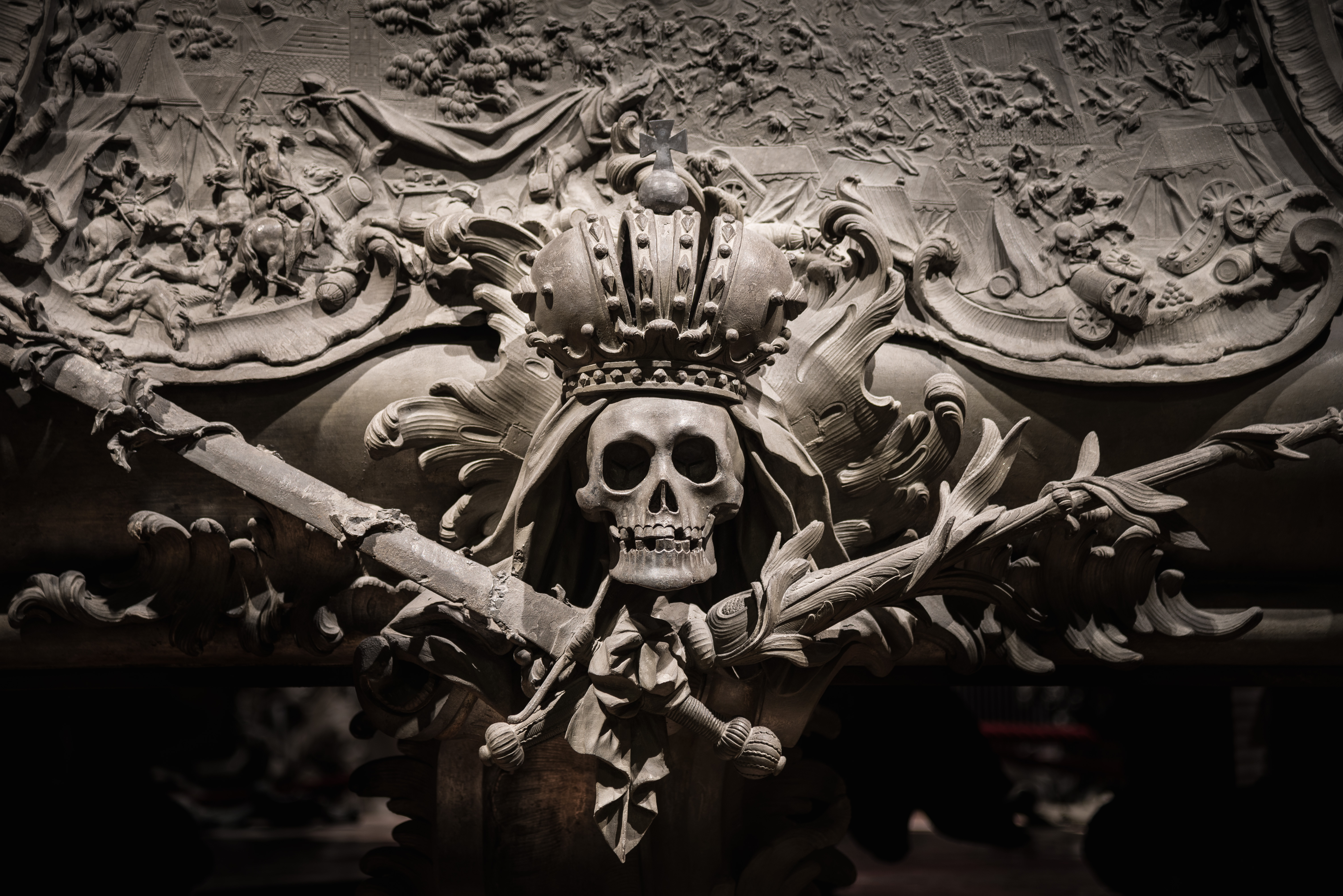 Totenschädel mit Reichskrone auf dem Sarkophag von Karl VI.